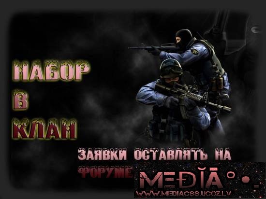 Краткое описание: ![]() Набор открыт, заявки остовлять на форуме. Набор длится с 26.11.13 До 08.12.13 Требуется: Навык в игре. Знание устава клана. Не младше 16 лет. Знать об Css. | ||